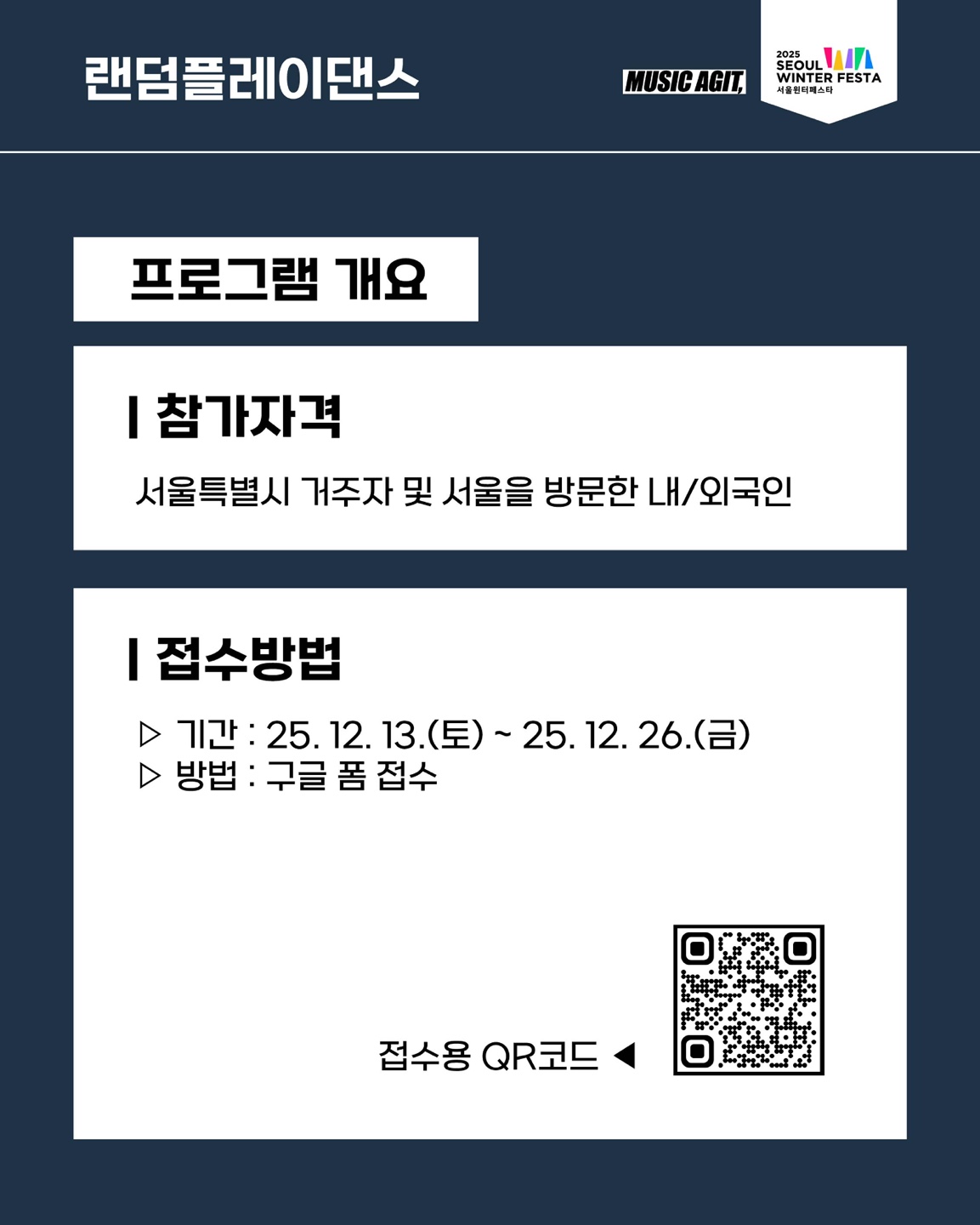 ★2025 서울윈터페스타 랜덤플레이댄스 참가자 모집★ 25.12.13(토)~25.12.26(금)까지!